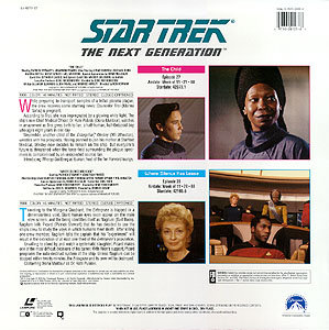 | Stardate 42073.1 While preparing to transport samples of a lethal plasma plague, the crew receives some startling news: Counselor Troi (Marina Sirtis) is pregnant. According to Troi, she was impregnated by a glowing white light. The ship's new Chief Medical Officer, Dr. Kate Pulaski (Diana Muldaur), watches in amazement as Troi gives birth to Ian, a half-human, half-Betazoid boy who ages eight years in one day. Meanwhile, another child of the Enterprise, Wesley (Wil Wheaton) wrestles with his prospects. He must choose between joining his mother at Starfleet medical or staying onboard the ship. With some advice from Guinan (Whoopi Goldberg), the bartender in the Ten Forward lounge, Wesley decides to remain on the ship. But everyone's future is threatened when the force-field surrounding the plague specimens is compromised by an unexpected source: Ian. | |