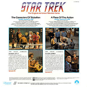 | Stardate 4598.0 It's been 100 years since the U.S.S. Horizon visited the planet Iotia. What have the natives been up to? Kirk and the Enterprise crew quickly learn when they arrive to check on the planet's progress. The Iotians have developed a civilization based on a book the Horizon crew left: "Chicago Mobs of the Twenties." Suddenly, Kirk and company are in the midst of a planetwide gang war! Kirk's awkward attempt at driving is one of the most amusing moments of any episode! | |
