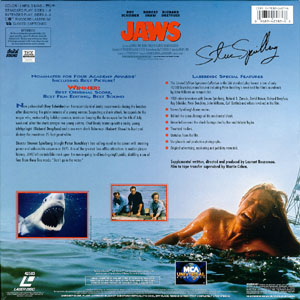 | This Limited Edition Signature Collection in the CAV standard play format is one of only 10,000 laserdiscs manufactured including Peter Benchley's novel and the film's soundtrack by John Williams on compact disc. | |